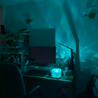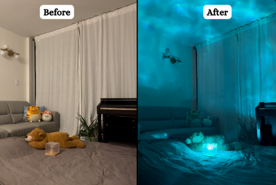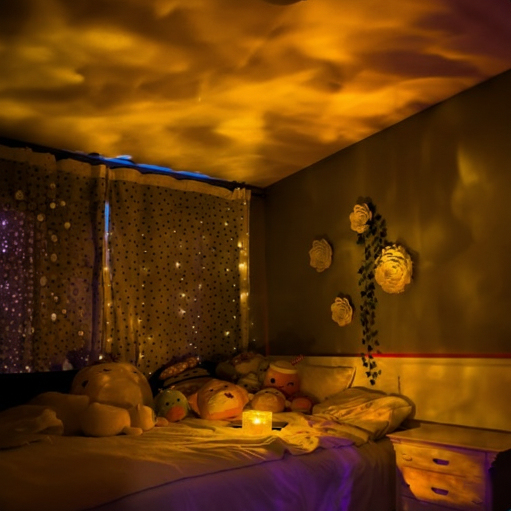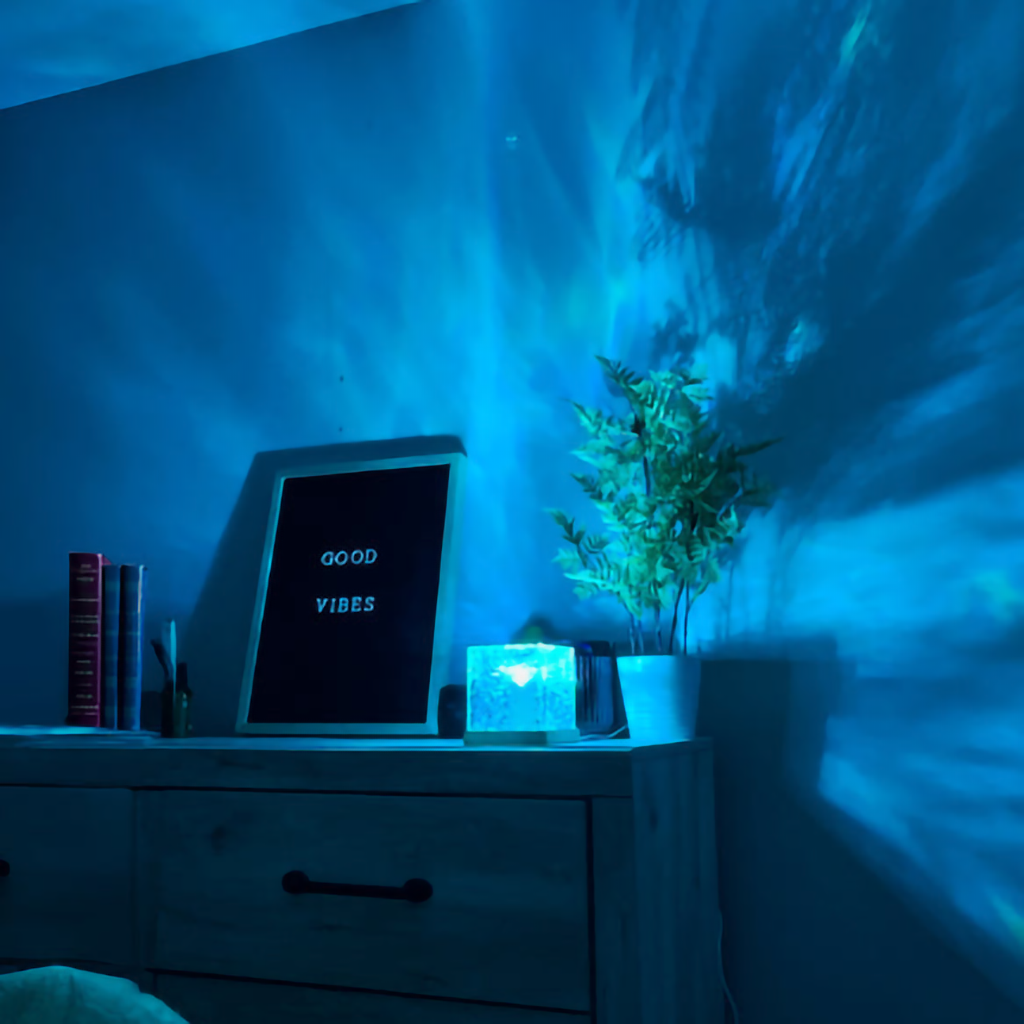 Gentle color waves resembling the aurora borealis, effectively reduces anxiety and stress. This soothing ambiance encourages creativity and emotional well-being, providing a serene space for relaxation and rejuvenation.